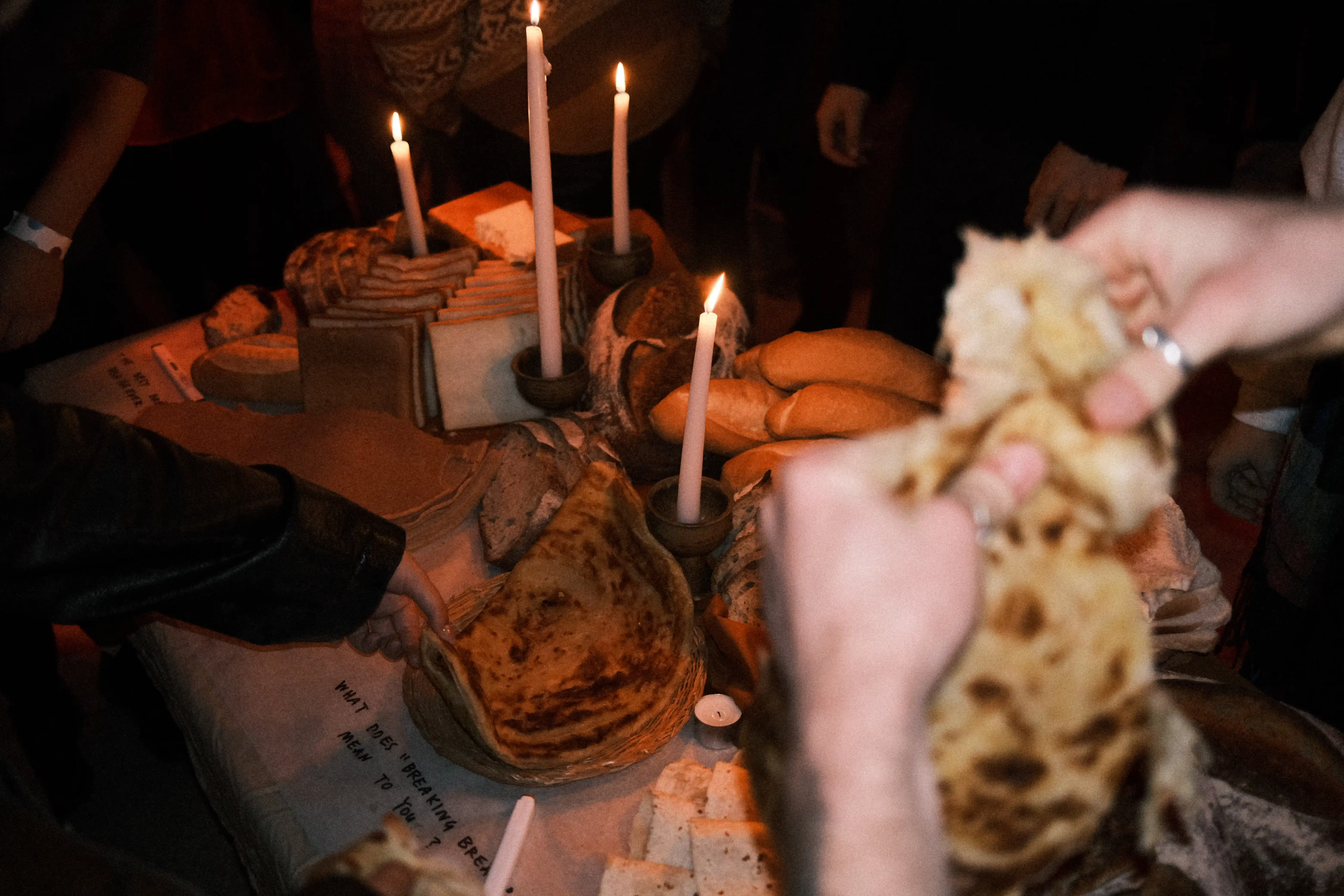 A culinary art installation by Thao Bee. Breads of the world: Injera, Roti, Banh Mi, Shokupan & Country Loaves (Oji House); paired with 3 compound butters - Miso Bone Marrow, Garlic Parmigiano, Spring Onion.
